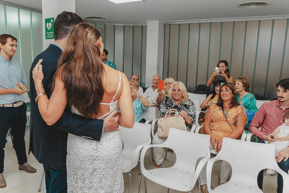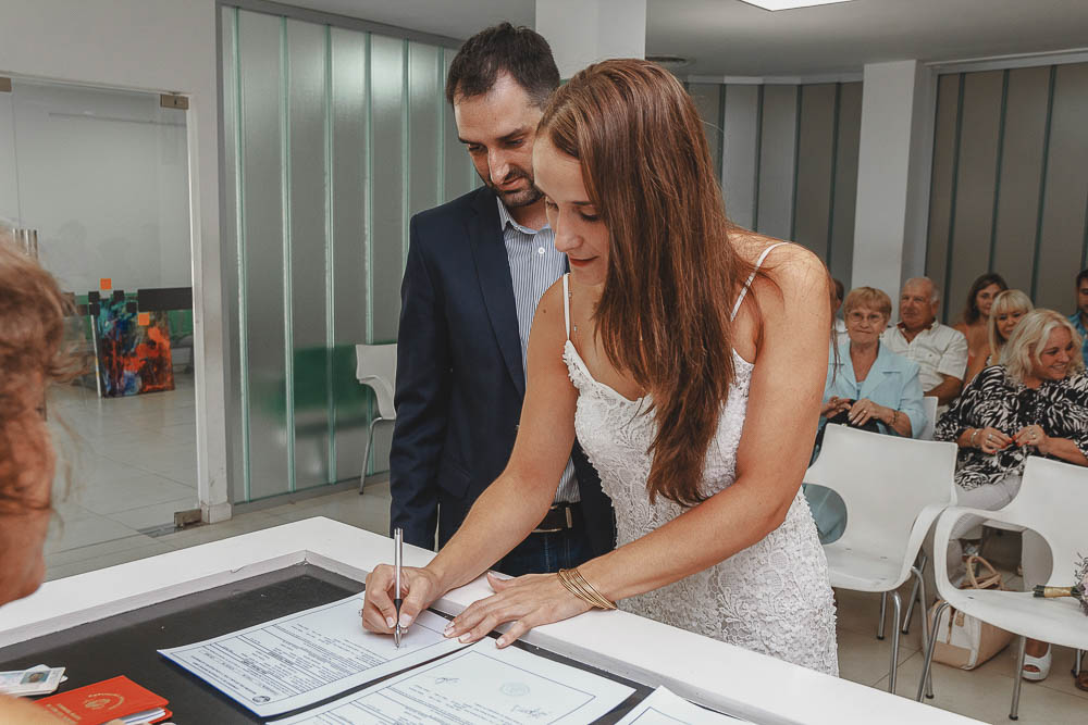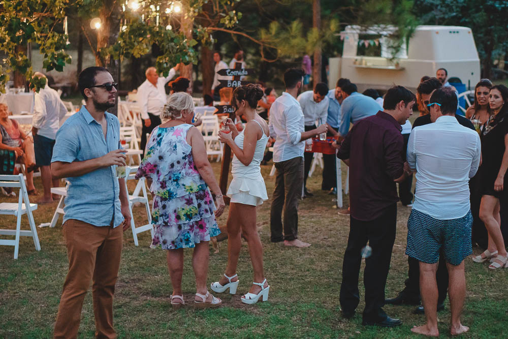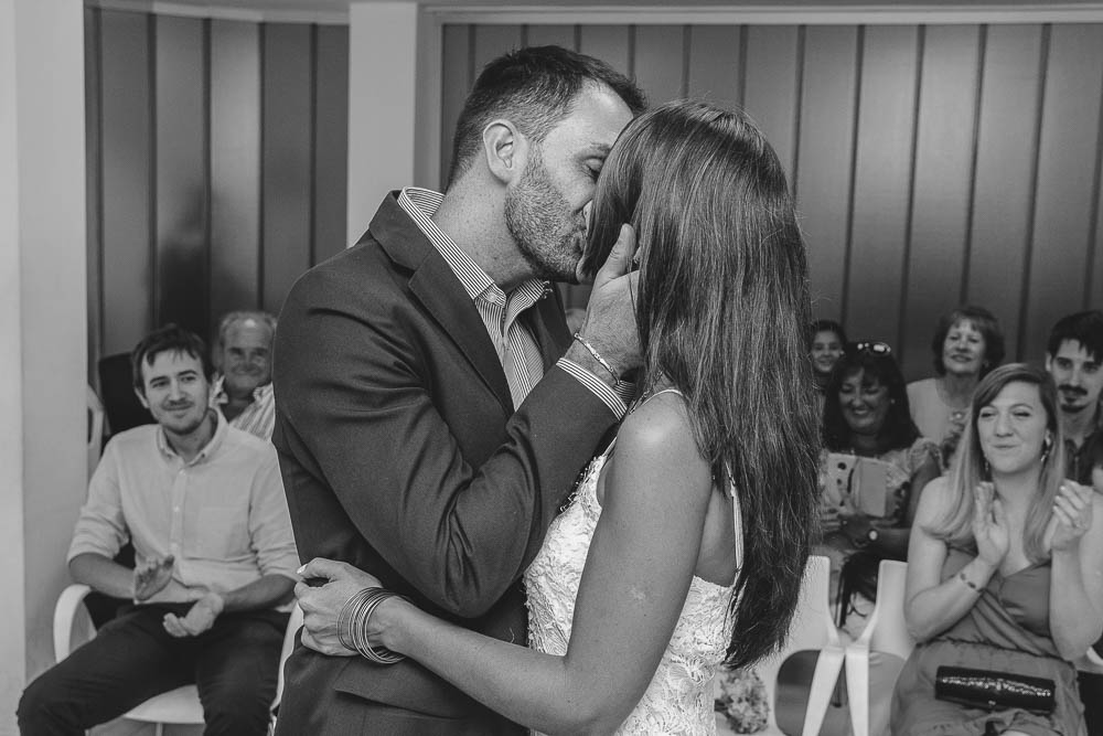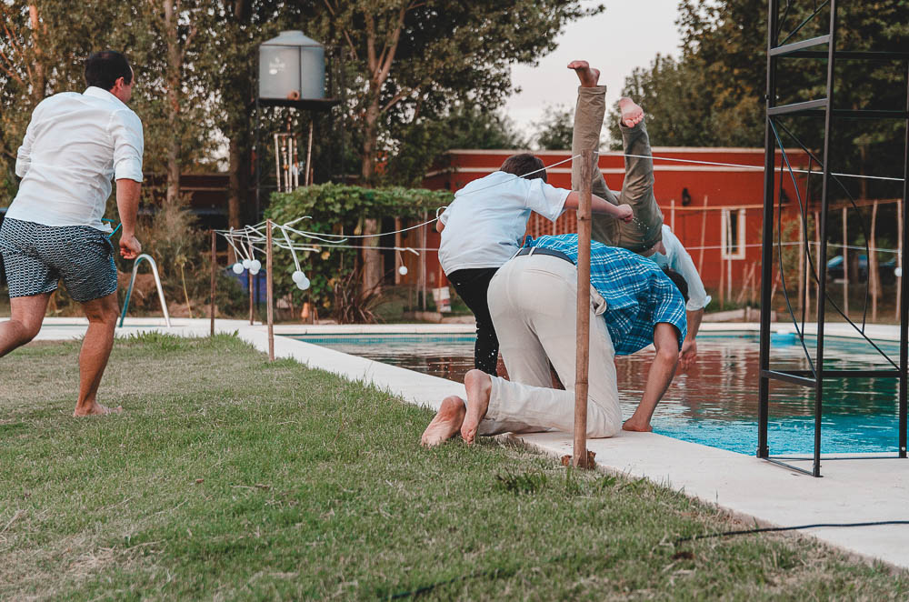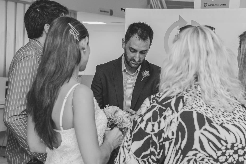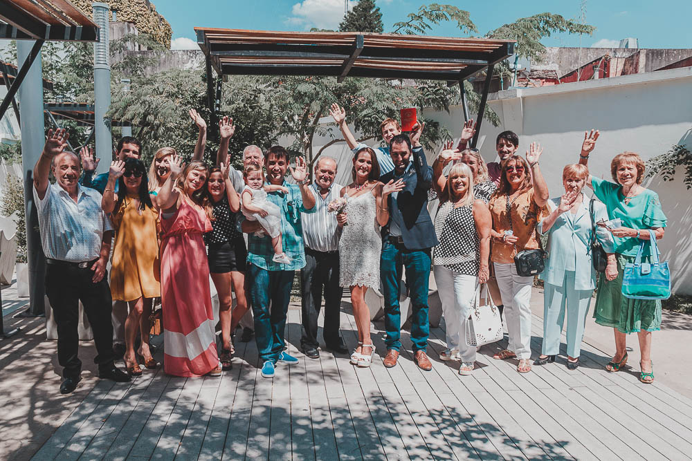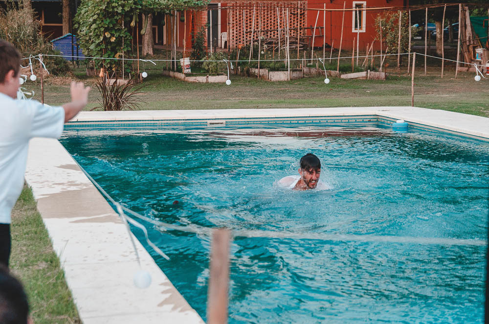 Comenzando en Palermo con el lago de fondo, terminamos en la fiesta, con ambos en la pileta. El agua como hilo conductor, dejando ver la transparencia de la felicidad compartida por sellar ese amor en un acto de compromiso ante la Ley y ante Dios. El atardecer ilumino el brindis y las palabras de amigos y familia inundó al flamante matrimonio.