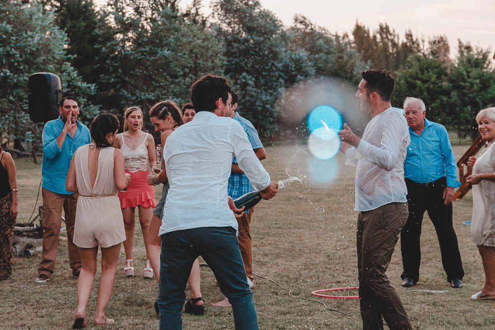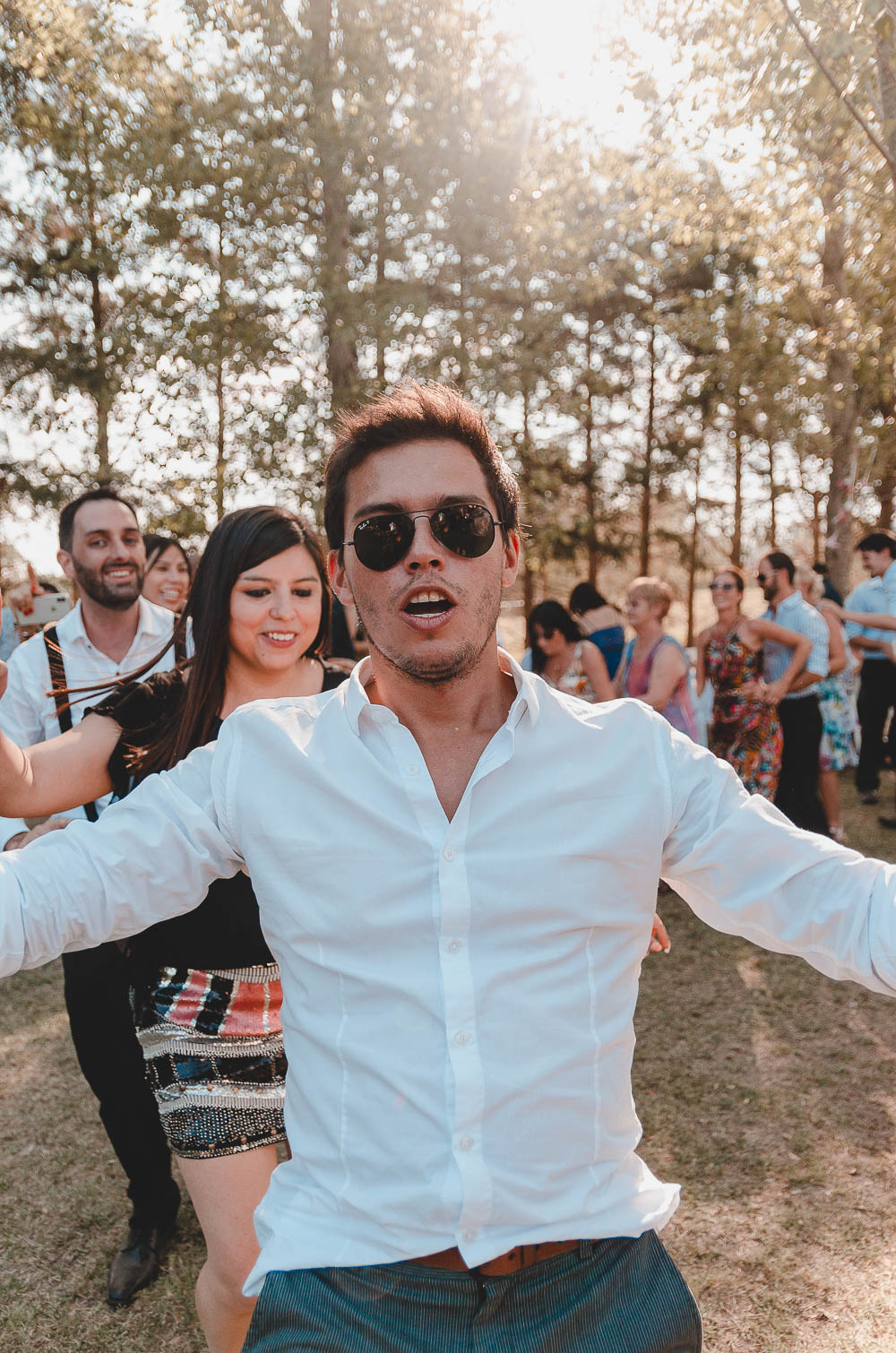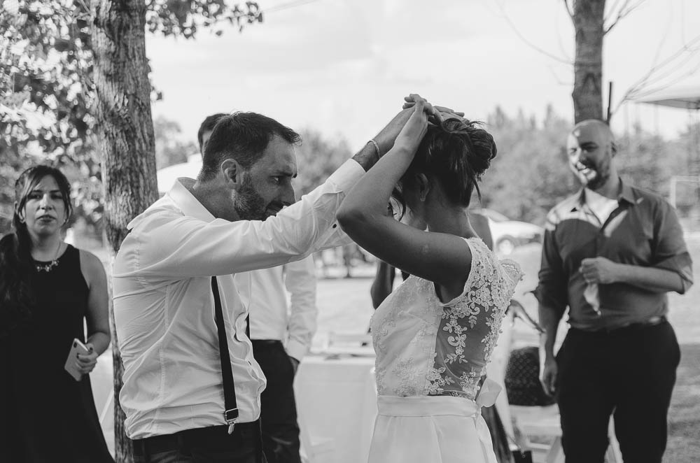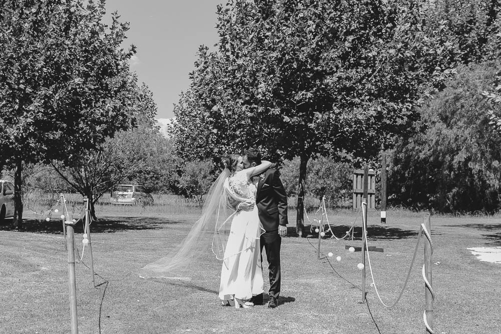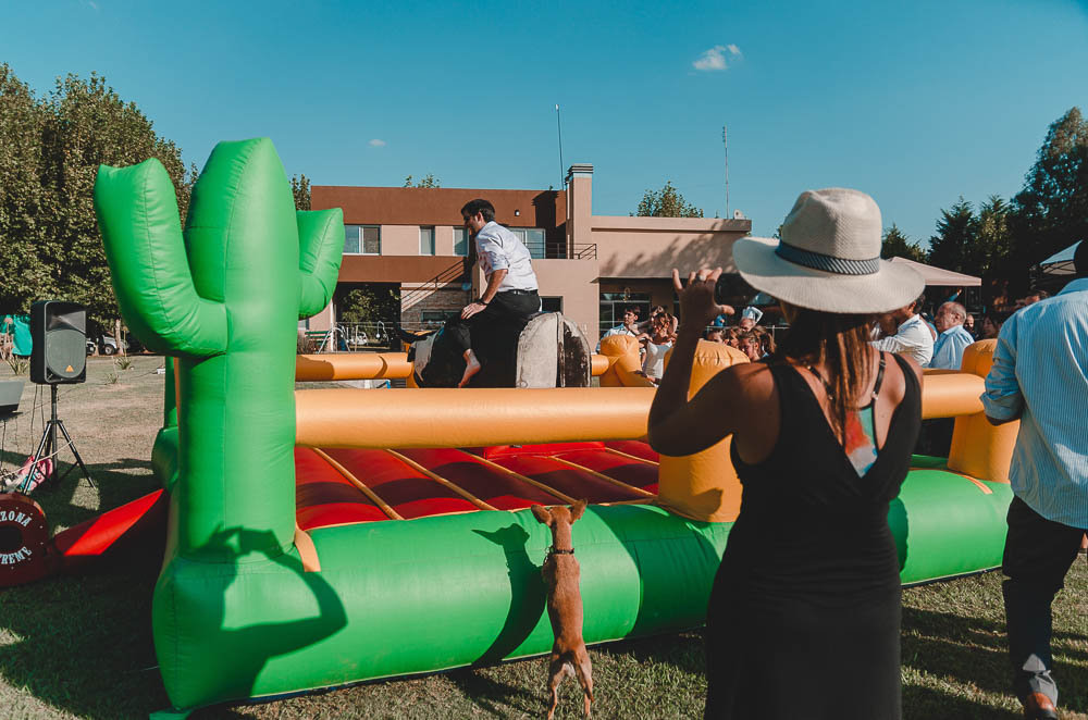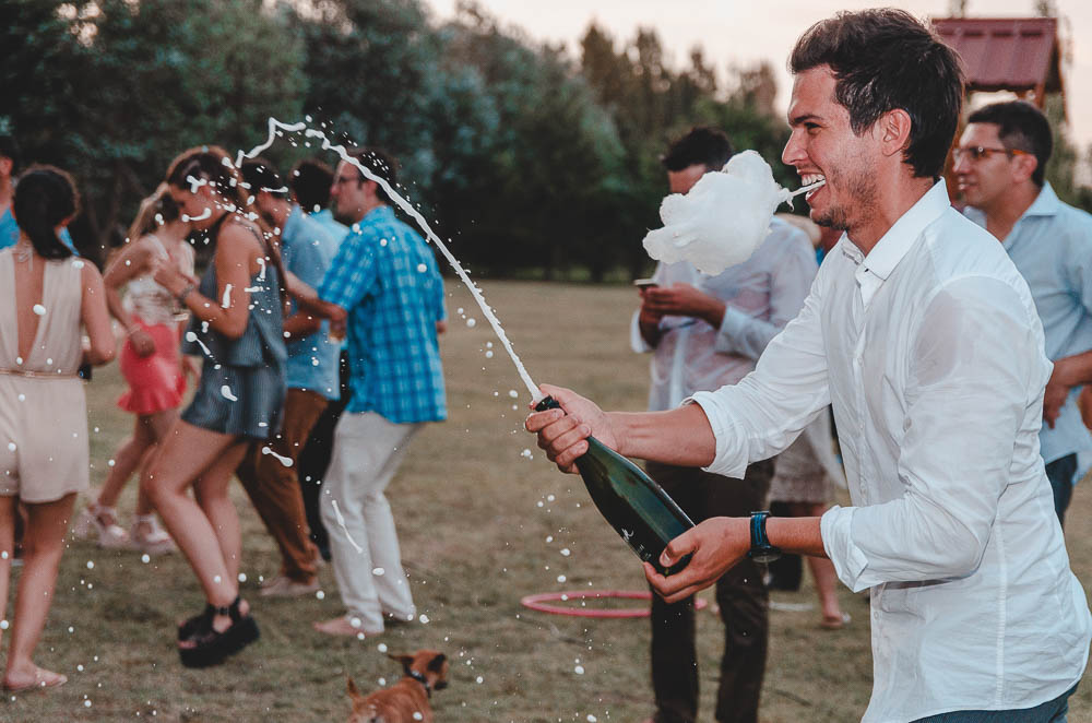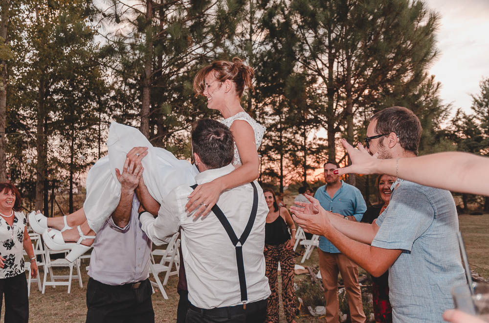 Comenzando en Palermo con el lago de fondo, terminamos en la fiesta, con ambos en la pileta. El agua como hilo conductor, dejando ver la transparencia de la felicidad compartida por sellar ese amor en un acto de compromiso ante la Ley y ante Dios. El atardecer ilumino el brindis y las palabras de amigos y familia inundó al flamante matrimonio.
