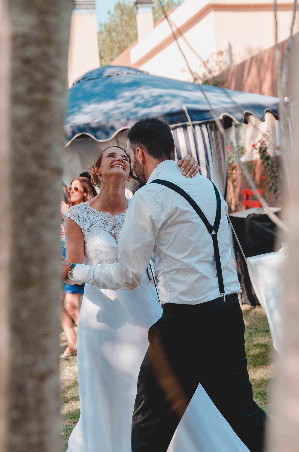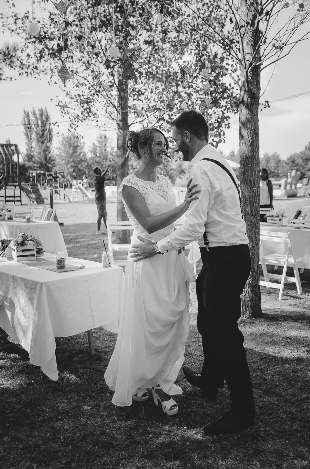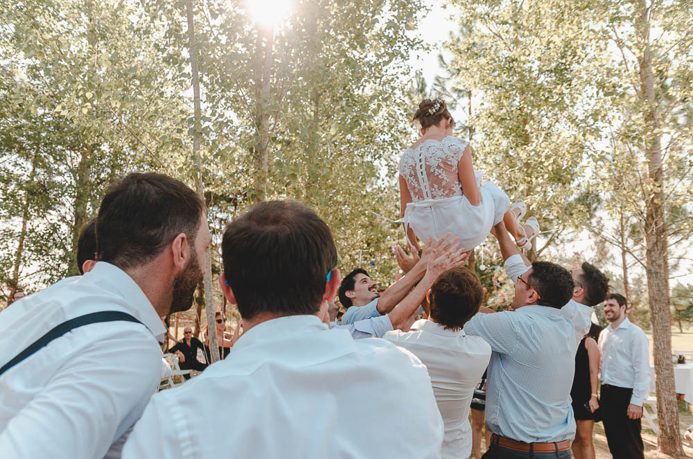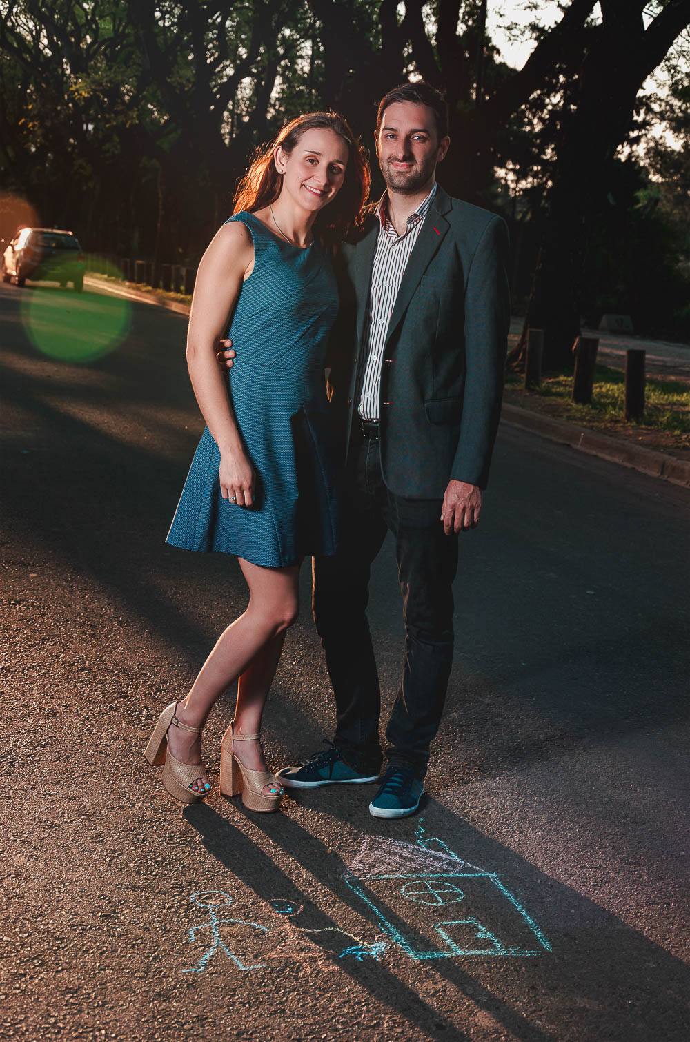 Comenzando en Palermo con el lago de fondo, terminamos en la fiesta, con ambos en la pileta. El agua como hilo conductor, dejando ver la transparencia de la felicidad compartida por sellar ese amor en un acto de compromiso ante la Ley y ante Dios. El atardecer ilumino el brindis y las palabras de amigos y familia inundó al flamante matrimonio.