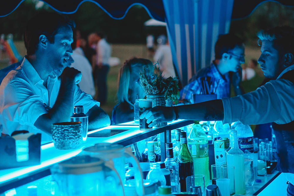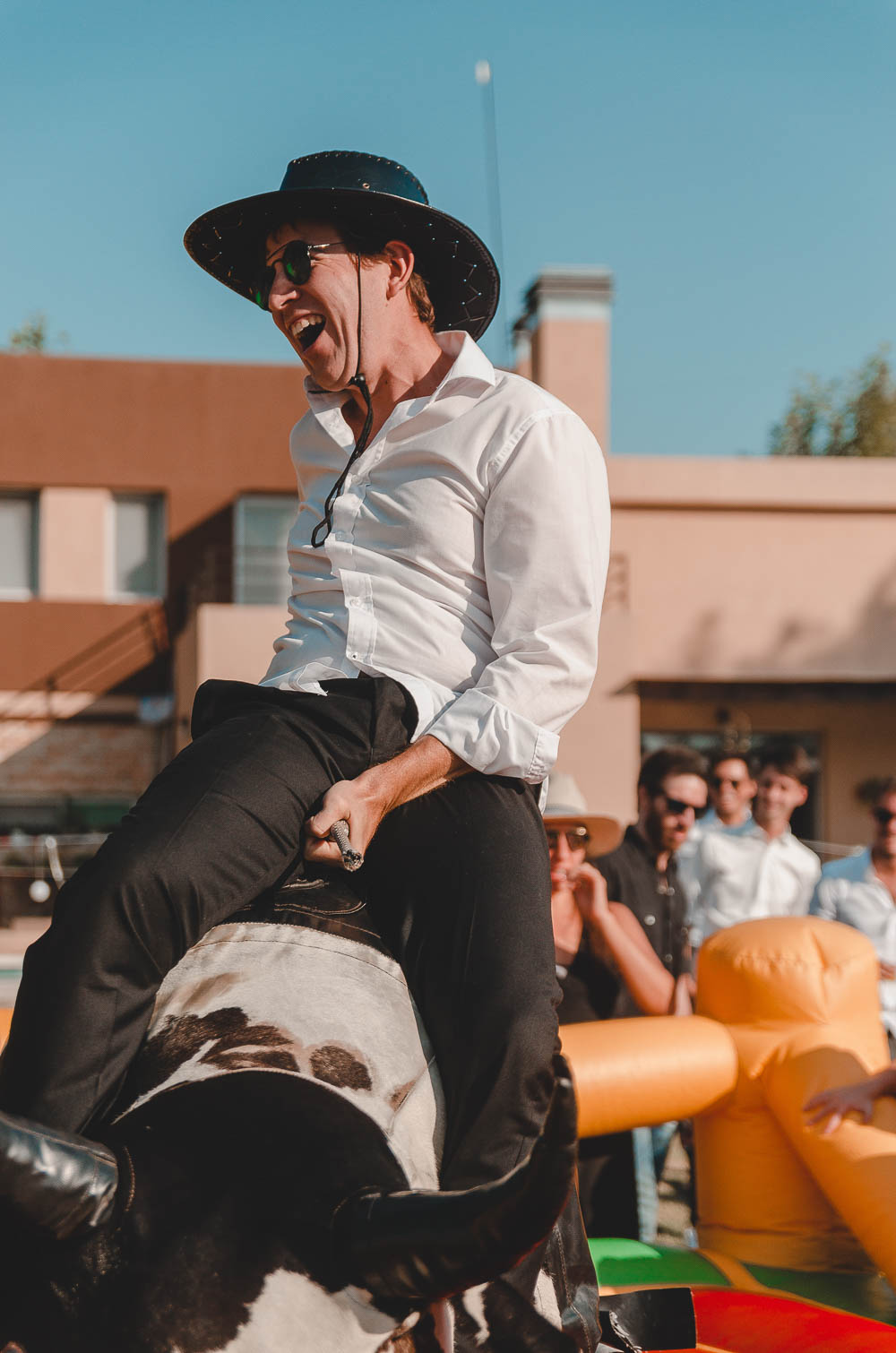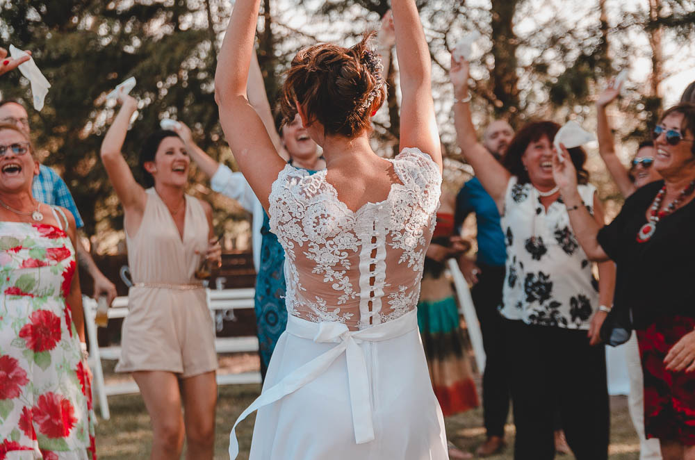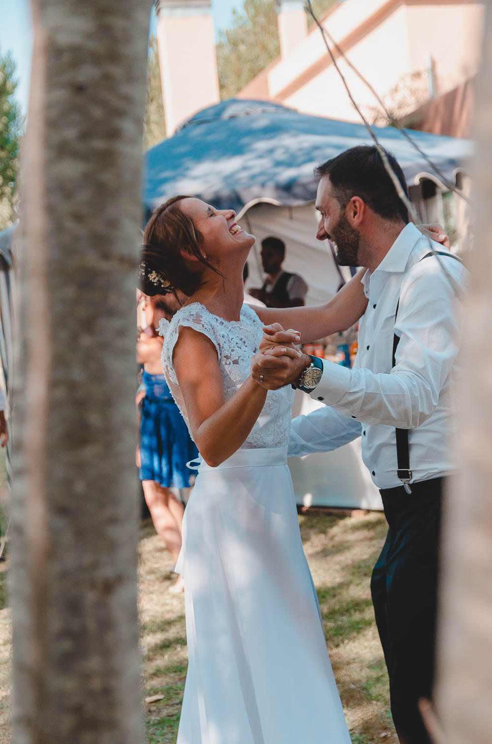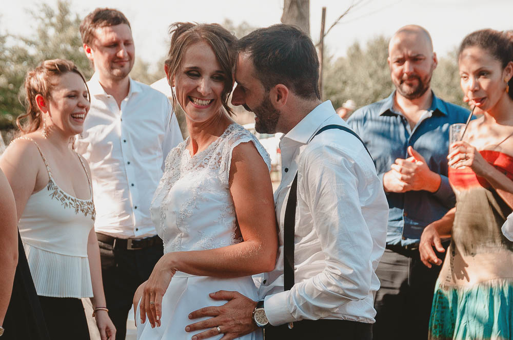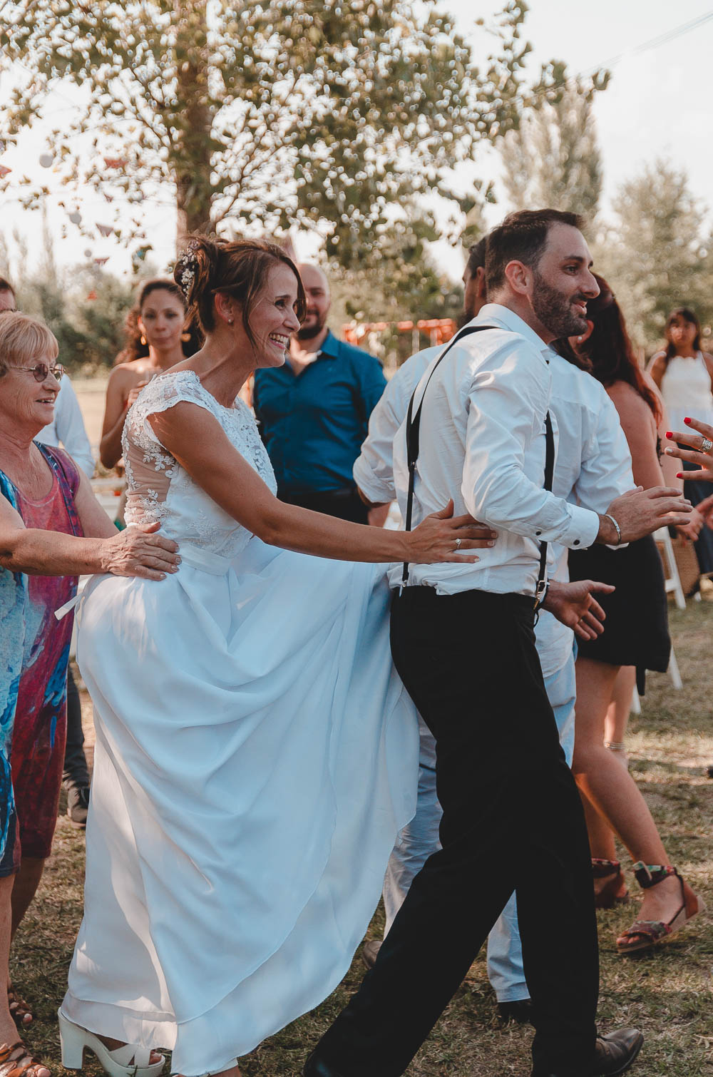 Comenzando en Palermo con el lago de fondo, terminamos en la fiesta, con ambos en la pileta. El agua como hilo conductor, dejando ver la transparencia de la felicidad compartida por sellar ese amor en un acto de compromiso ante la Ley y ante Dios. El atardecer ilumino el brindis y las palabras de amigos y familia inundó al flamante matrimonio.