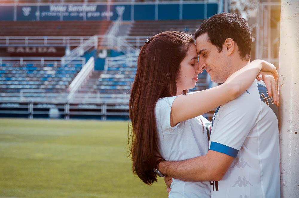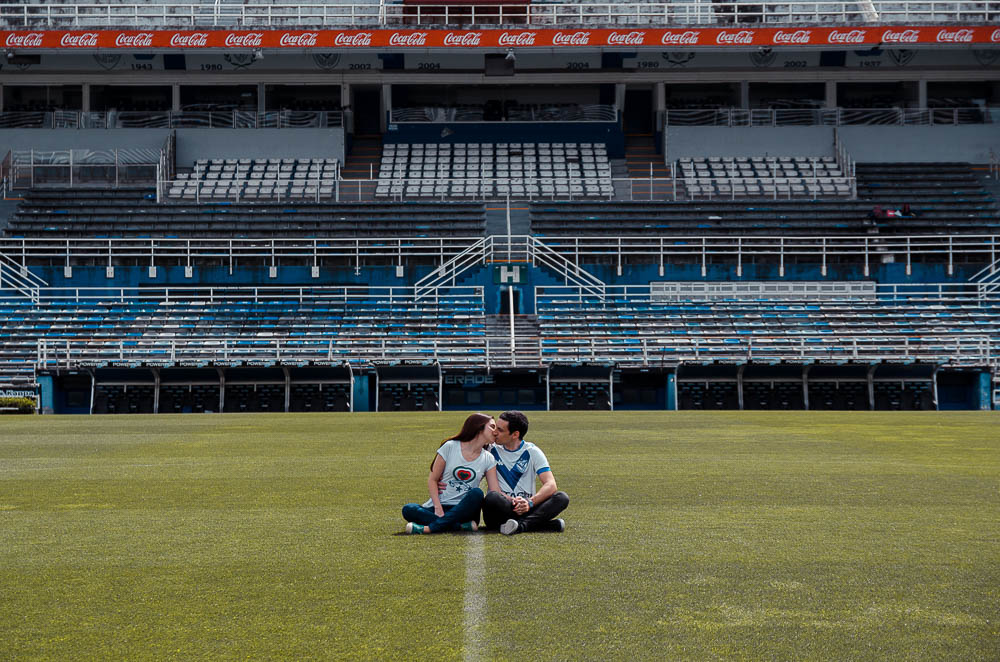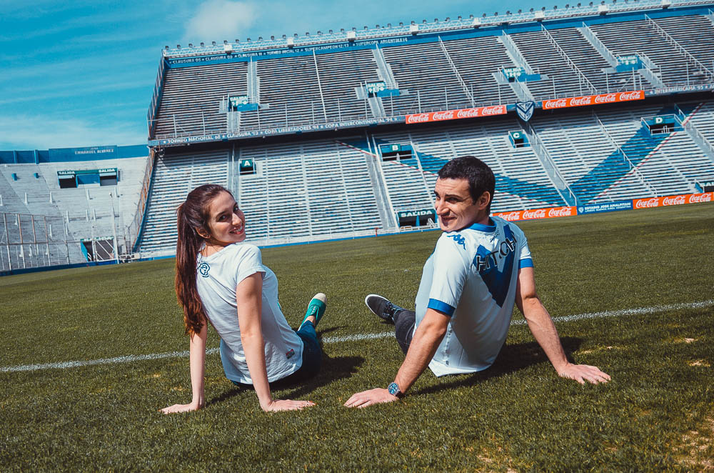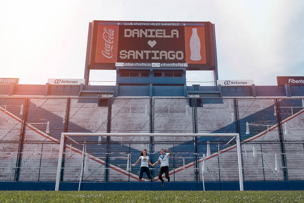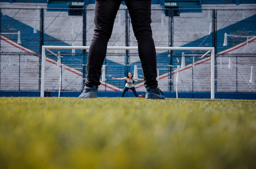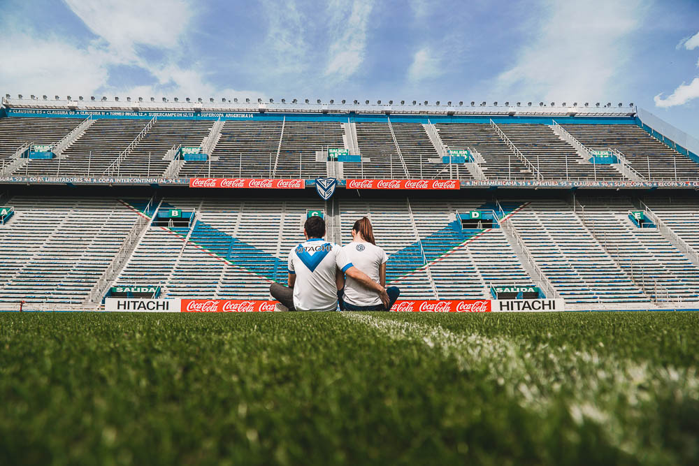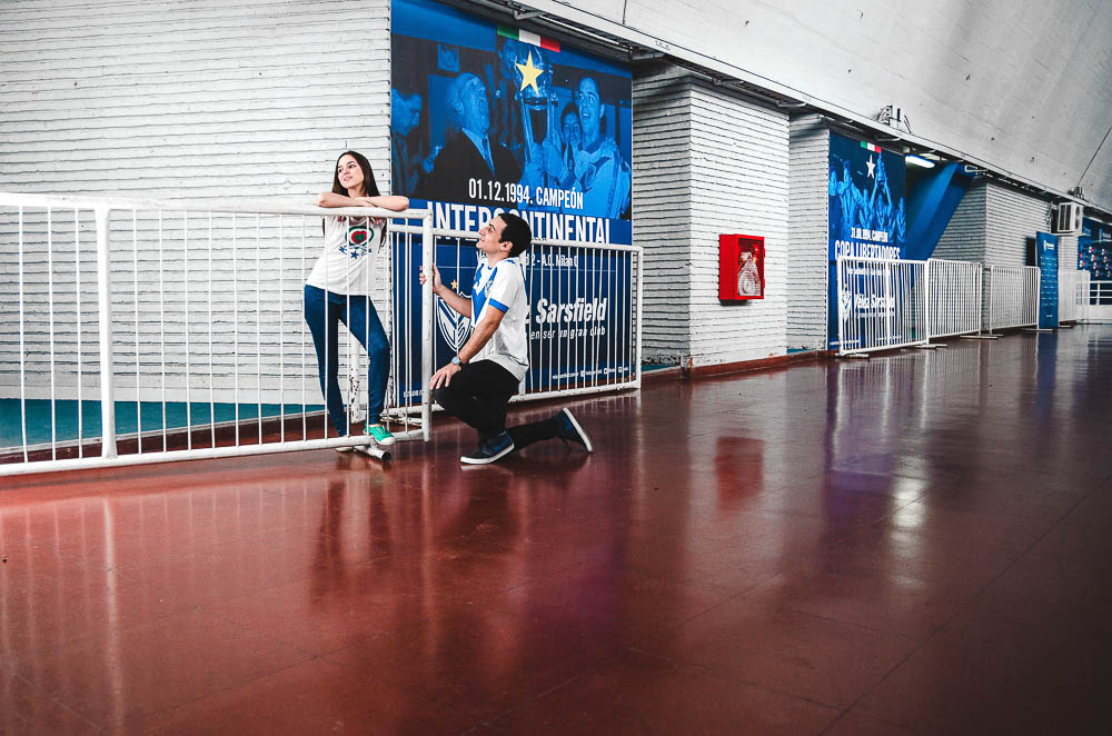 La sesión Pre-boda tuvo lugar en una locación poco habitual: el Estadio José Amalfitani. Dani y Santi venían contándonos esta idea pero estaba en pleno negociación. El día comenzó y poco a poco la sesión de fotos se llenó de los colores de Vélez Sarsfield, mientras caminábamos los vestuarios. El entusiasmo y el amor salieron a la cancha, mientras Dani y Santi se olvidaron de nosotros y se dejaron llevar por el césped del estadio.