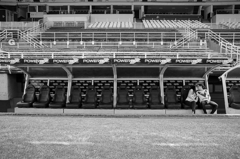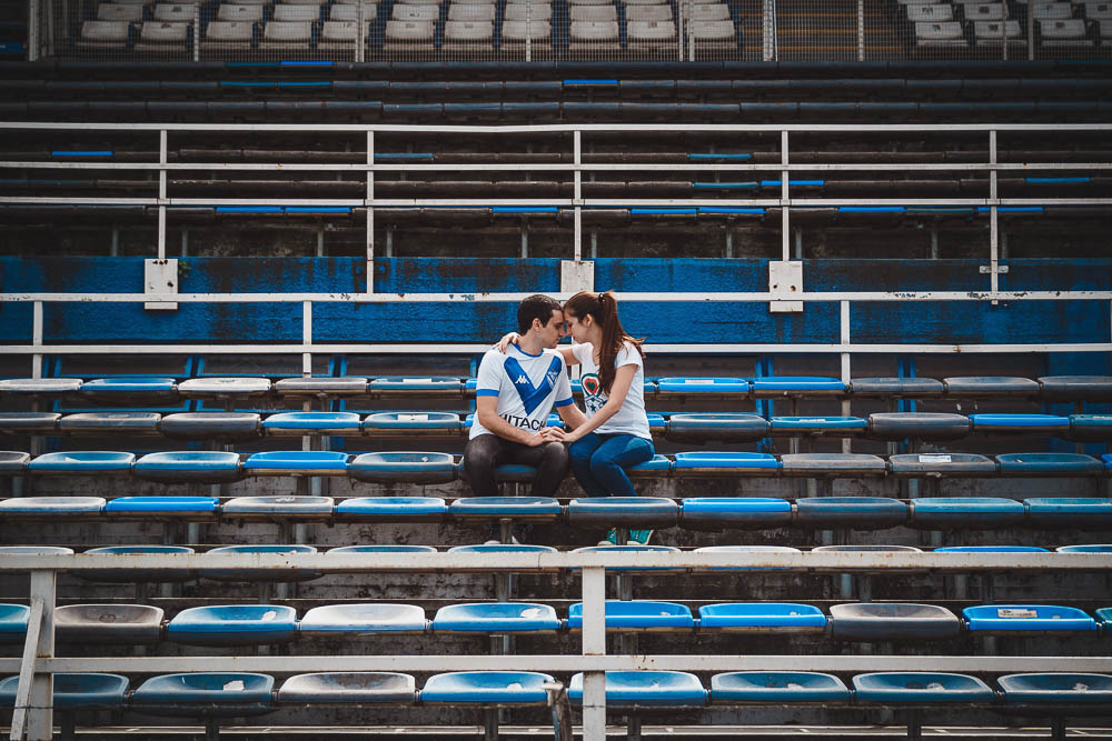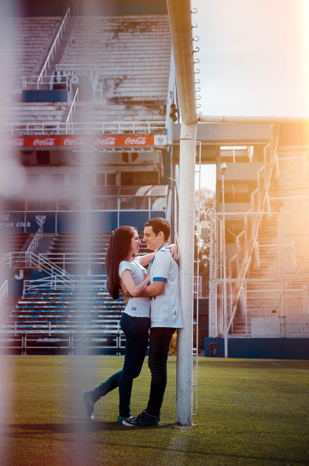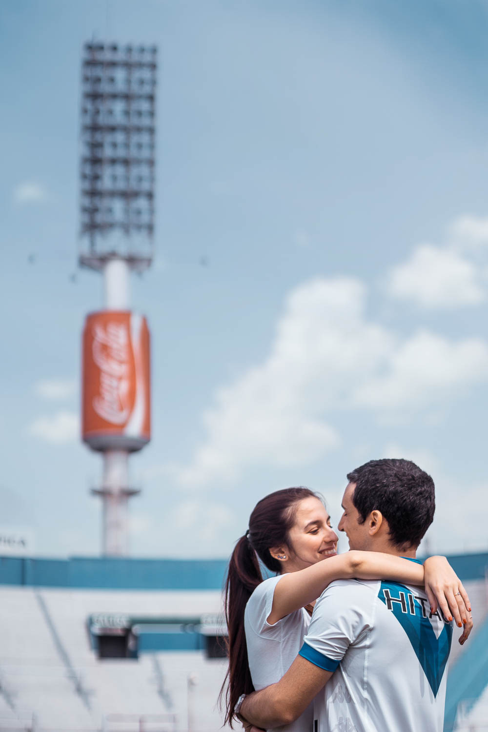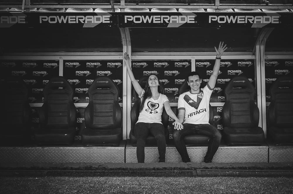 La sesión Pre-boda tuvo lugar en una locación poco habitual: el Estadio José Amalfitani. Dani y Santi venían contándonos esta idea pero estaba en pleno negociación. El día comenzó y poco a poco la sesión de fotos se llenó de los colores de Vélez Sarsfield, mientras caminábamos los vestuarios. El entusiasmo y el amor salieron a la cancha, mientras Dani y Santi se olvidaron de nosotros y se dejaron llevar por el césped del estadio.