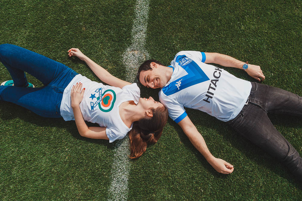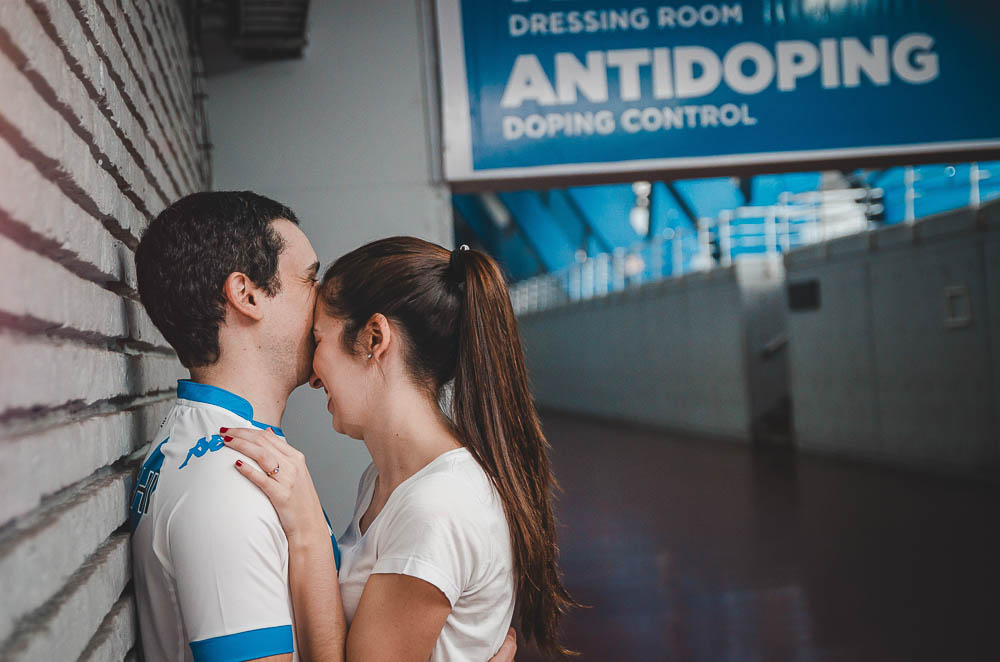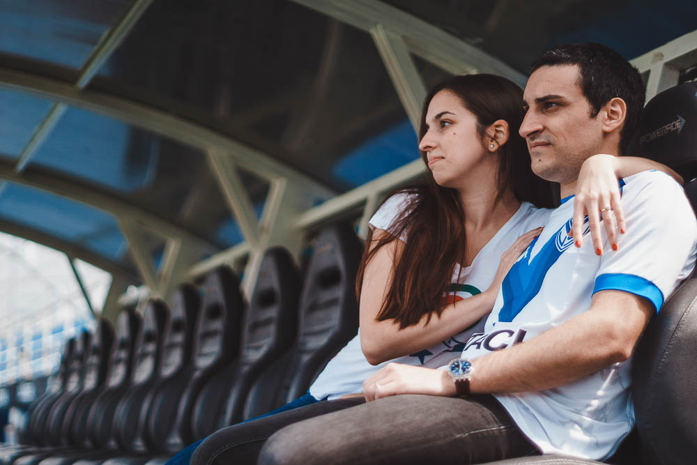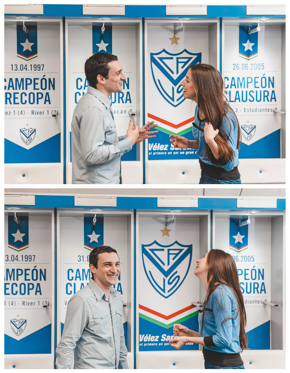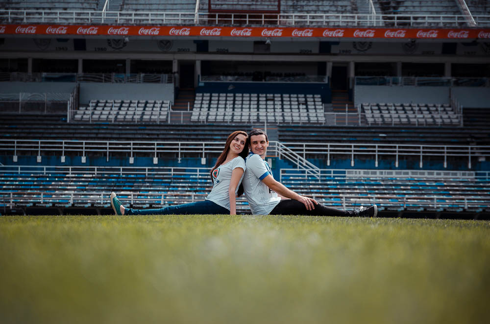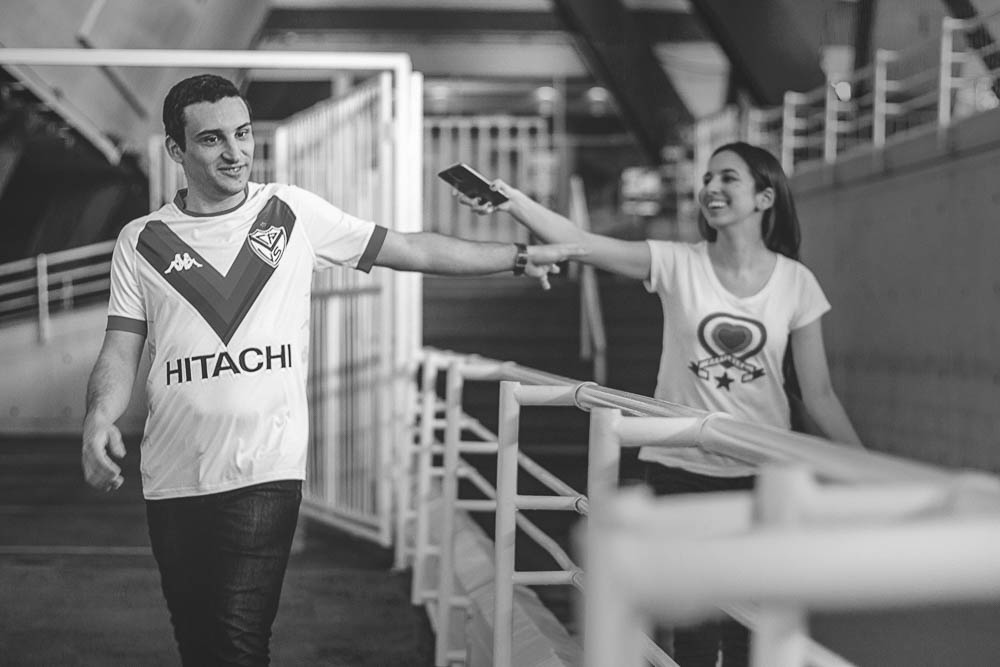 La sesión Pre-boda tuvo lugar en una locación poco habitual: el Estadio José Amalfitani. Dani y Santi venían contándonos esta idea pero estaba en pleno negociación. El día comenzó y poco a poco la sesión de fotos se llenó de los colores de Vélez Sarsfield, mientras caminábamos los vestuarios. El entusiasmo y el amor salieron a la cancha, mientras Dani y Santi se olvidaron de nosotros y se dejaron llevar por el césped del estadio.